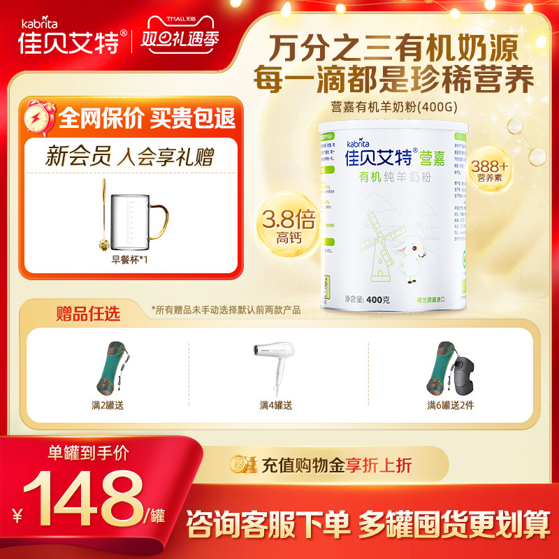 【官方正品】佳贝艾特营嘉有机纯羊奶粉成人中老年高钙奶粉400g