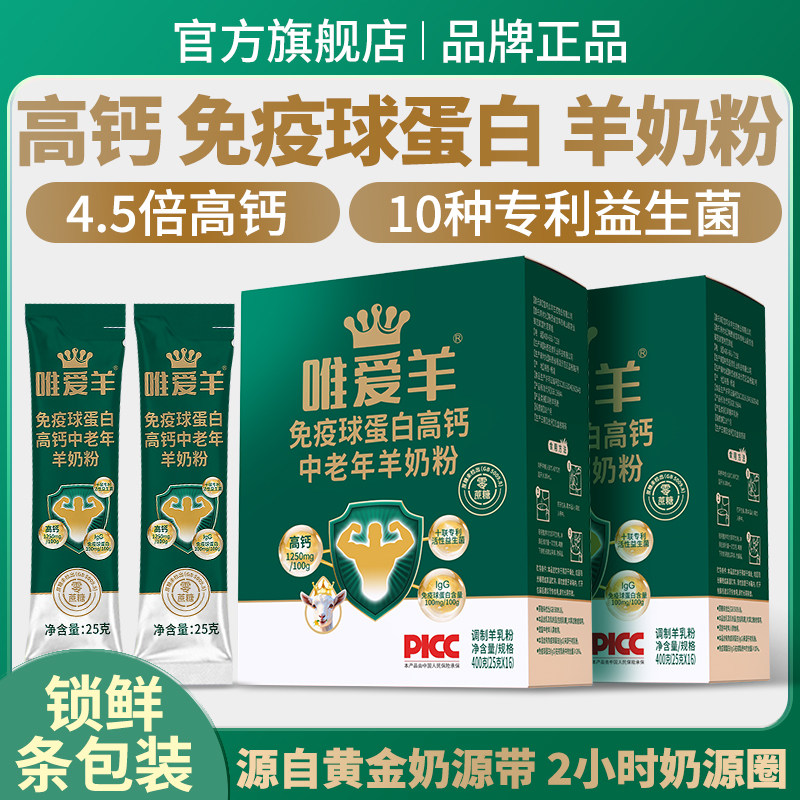 纯羊奶粉成人中老年全脂高钙高蛋白400g独立条包装正品官方旗舰店