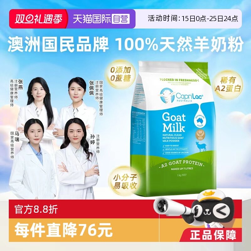 【自营】澳洲进口CapriLac佳倍营A2蛋白高钙山羊奶粉成人儿童1kg