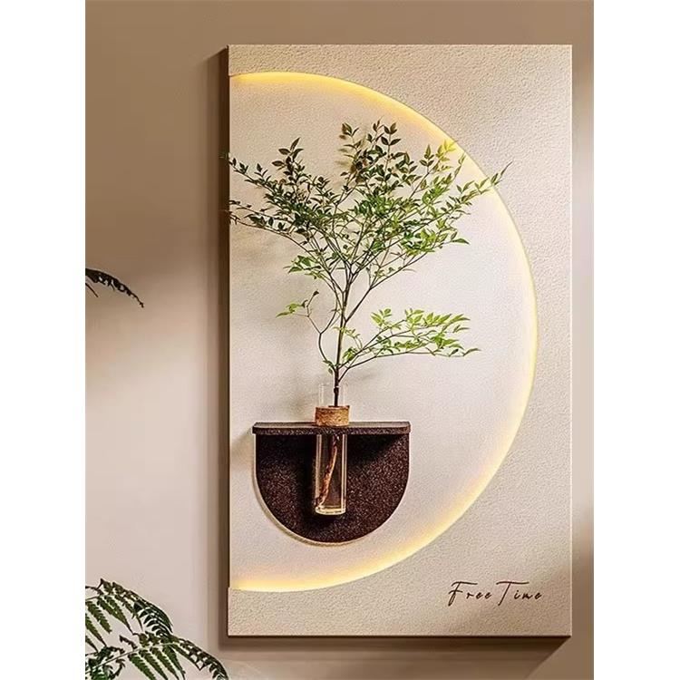 现代简约创意装饰画入户玄关客厅发光绿植奶油风背景清新砂岩挂画