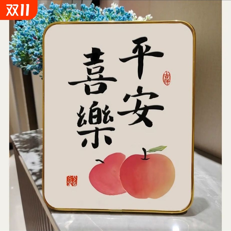 书法桌面摆件作品 宋锦宣纸摆台文创礼品手写diy卡纸创意装饰画框