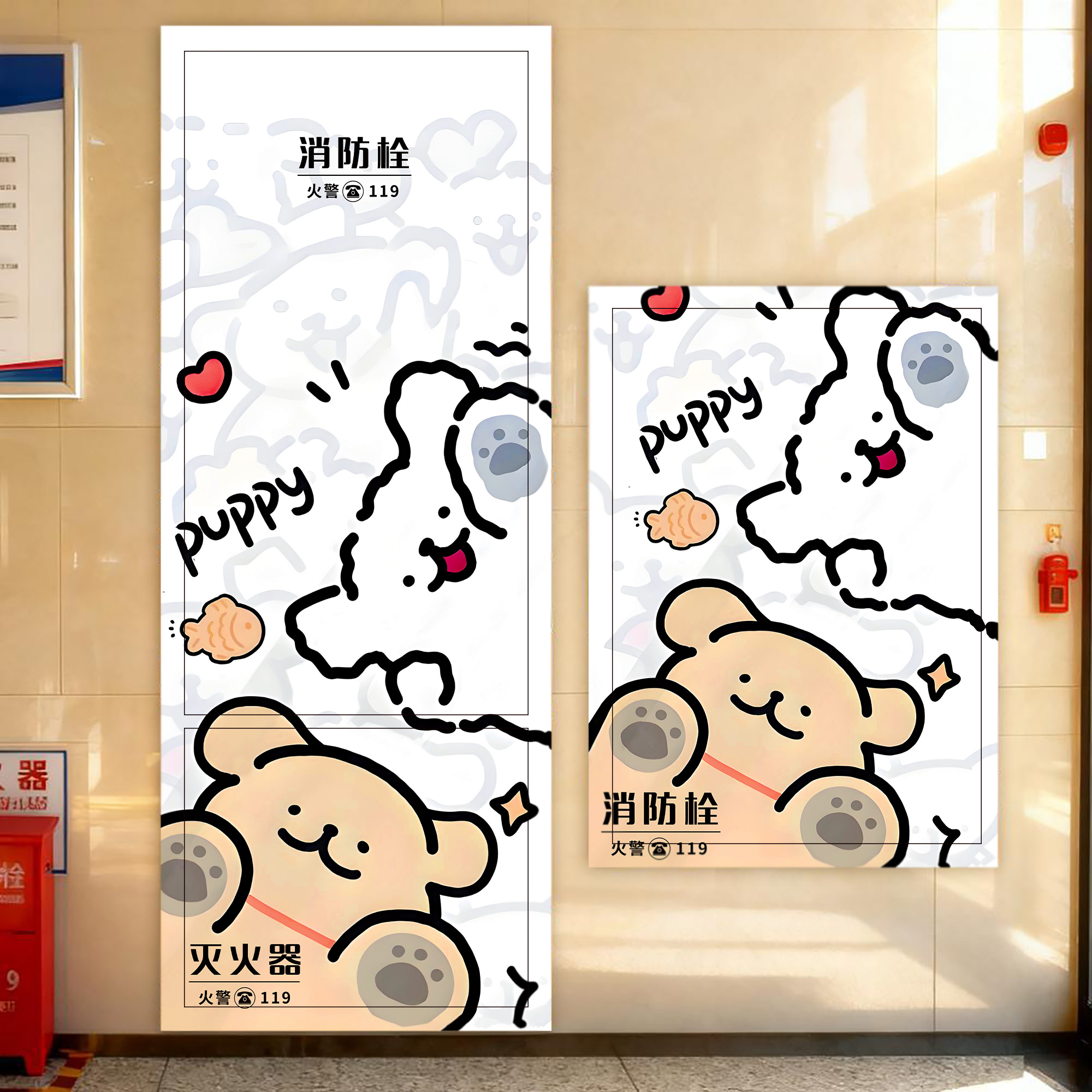 线条小狗消防栓贴纸高级感消火栓灭火器消防箱改造可爱创意装饰画