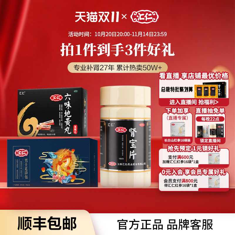 汇仁肾宝片补肾虚腰疼中药腰腿酸痛壮阳正品六味地黄丸服用42天