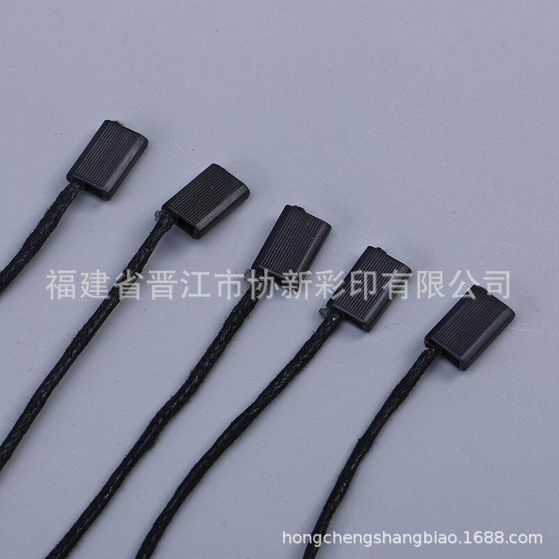 衣服吊粒方扣挂牌绳 棉绳蜡绳 吊牌绳塑料扣服装 米色黑色吊绳线
