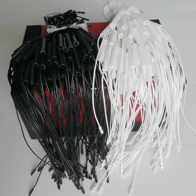 高档服装辅料定做吊粒吊牌绳扣黑白韩国蜡绳一次性子弹头通用现货