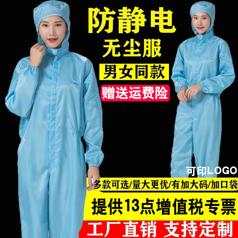 防静电无尘服连体防尘静电服男女洁净服洁净衣喷漆服车间防护蓝白