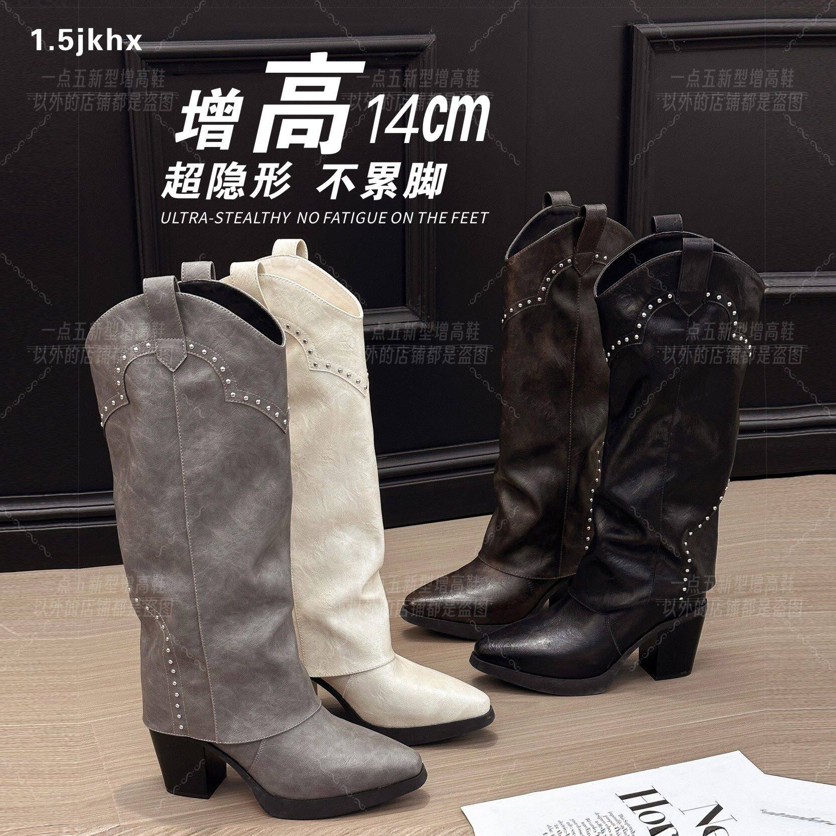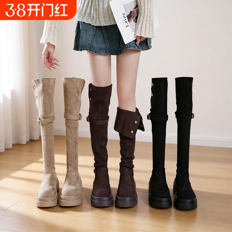 美拉德厚底长筒靴子女2025年秋冬季粗跟过膝骑士靴高跟鞋子小个子
