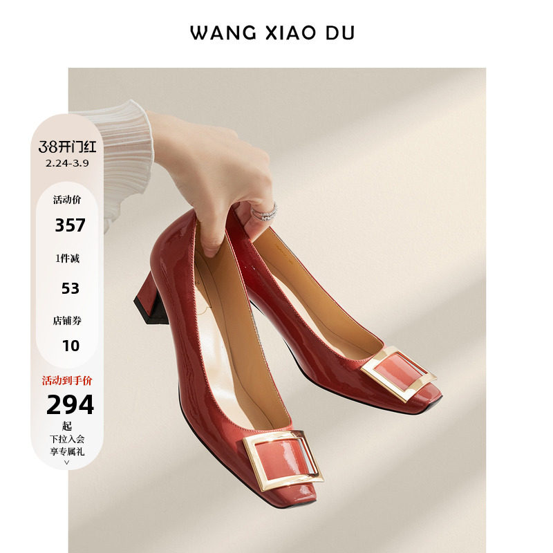 【王小毒】对方正在输入●高跟鞋子R方扣V小方头真皮单鞋女中粗跟
