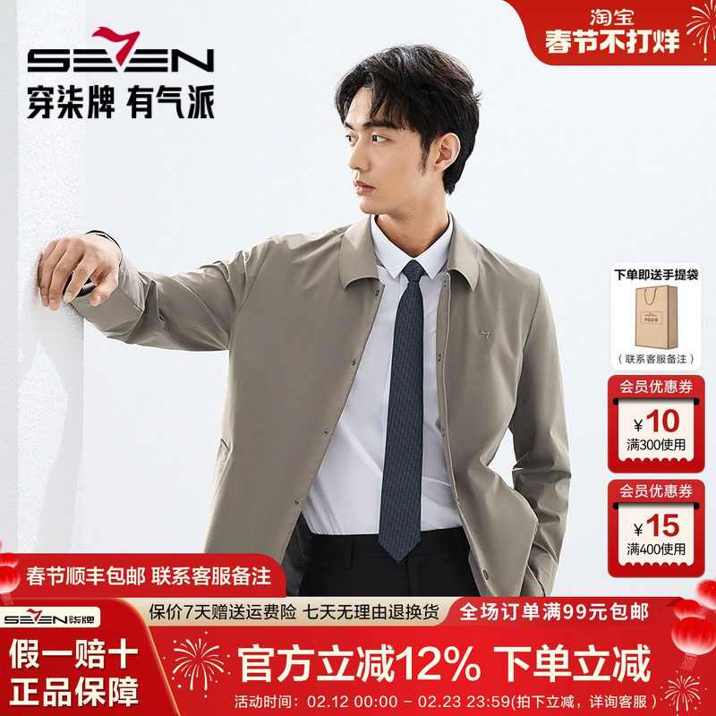柒牌中长款风衣男2025春季新品时尚休闲无缝翻领中青年夹克衫外套