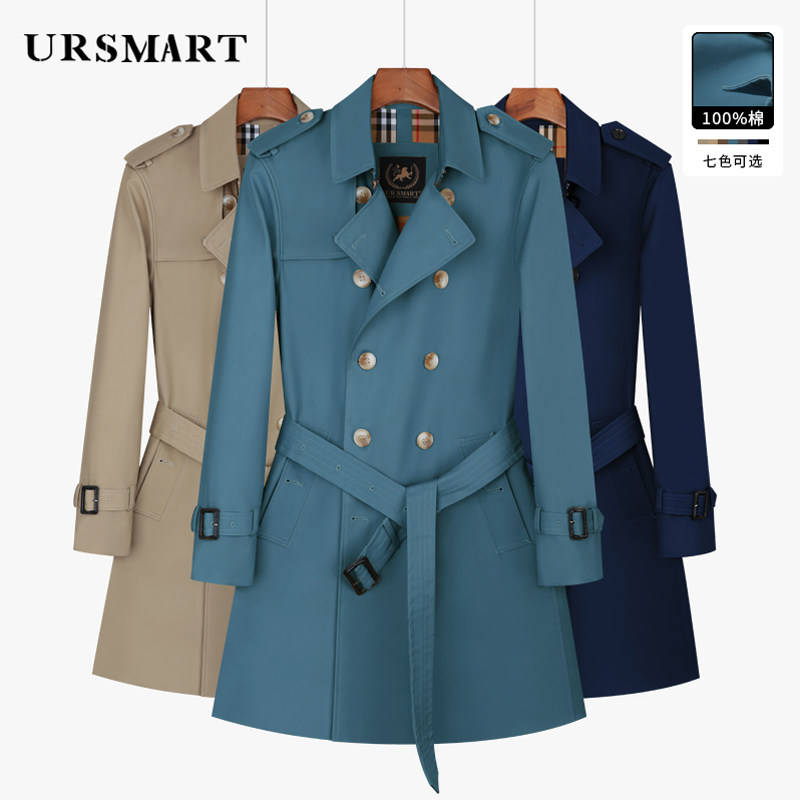 新品春秋季中长款战壕商务风衣防泼水面料青年休闲英伦男士潮外套