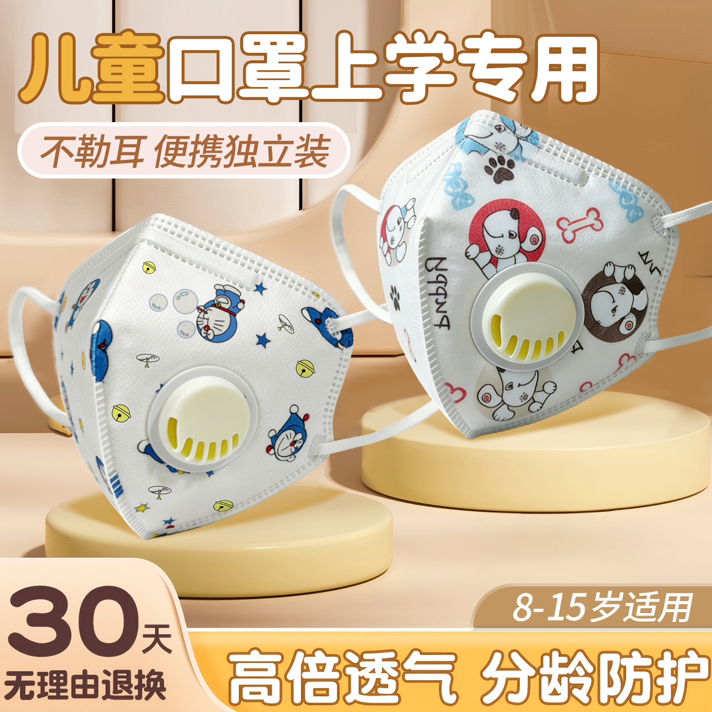 儿童口罩上学专用8到12岁独立包装10到15岁n95带呼吸阀防雾霾kn95