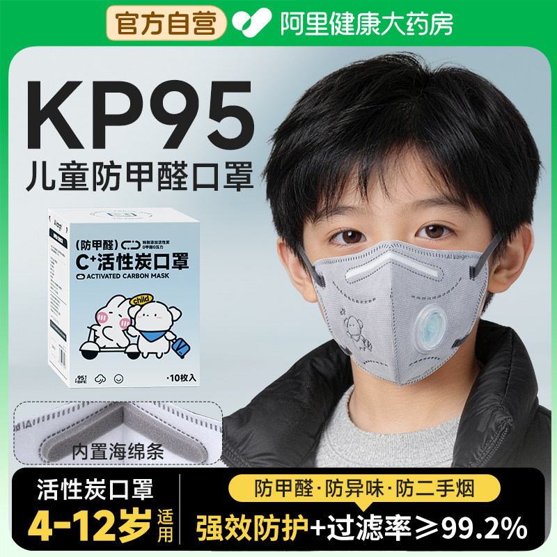 儿童活性炭口罩防甲醛专用防雾霾kp95防粉尘二手烟带呼吸阀透气