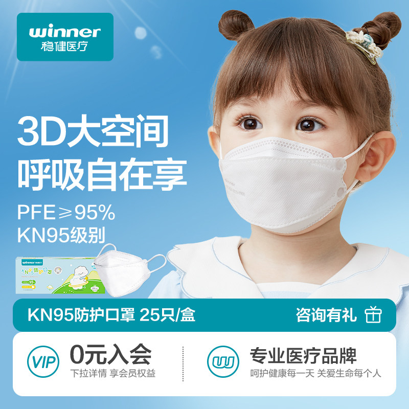 稳健儿童kn95口罩3d立体男童女孩1-14岁宝宝上学专用防尘防雾霾