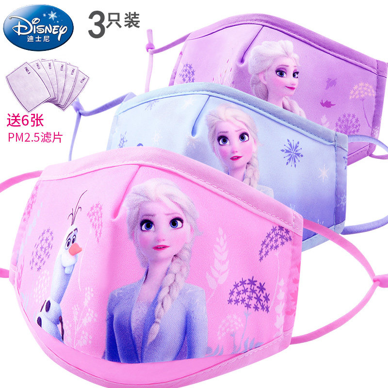 儿童口罩卡通迪士尼防风防霾防尘幼儿园女小学男生3-9岁防护口罩