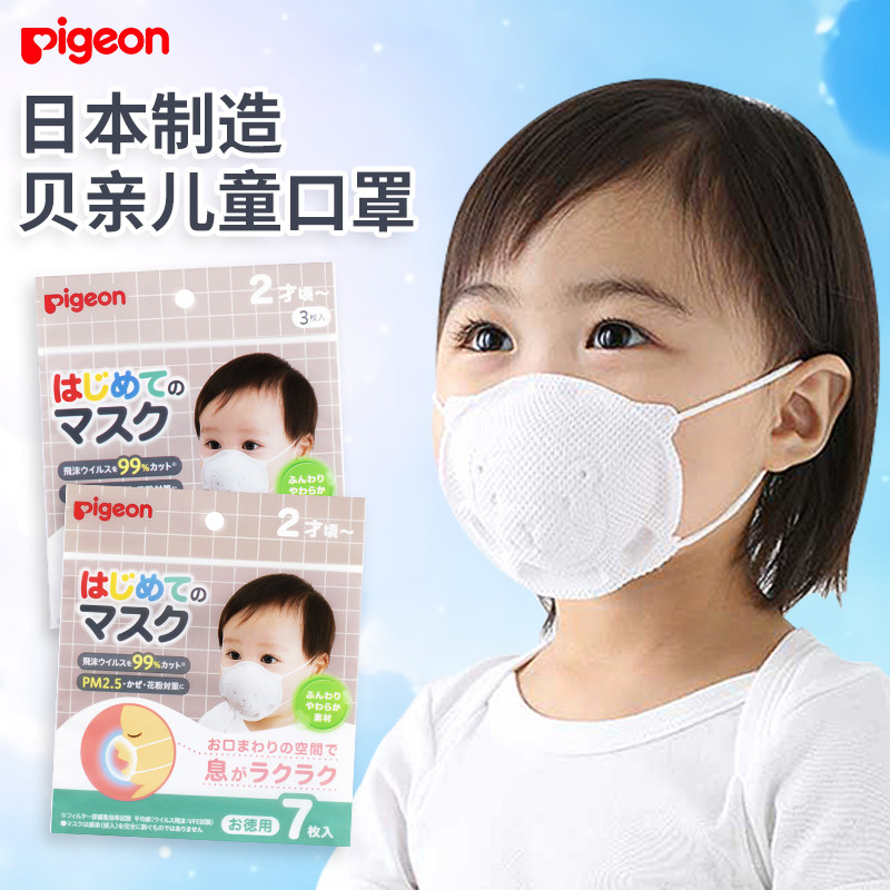 日本贝亲婴儿童宝宝口罩3D立体小熊防尘防花粉防霾风口罩 3枚7枚
