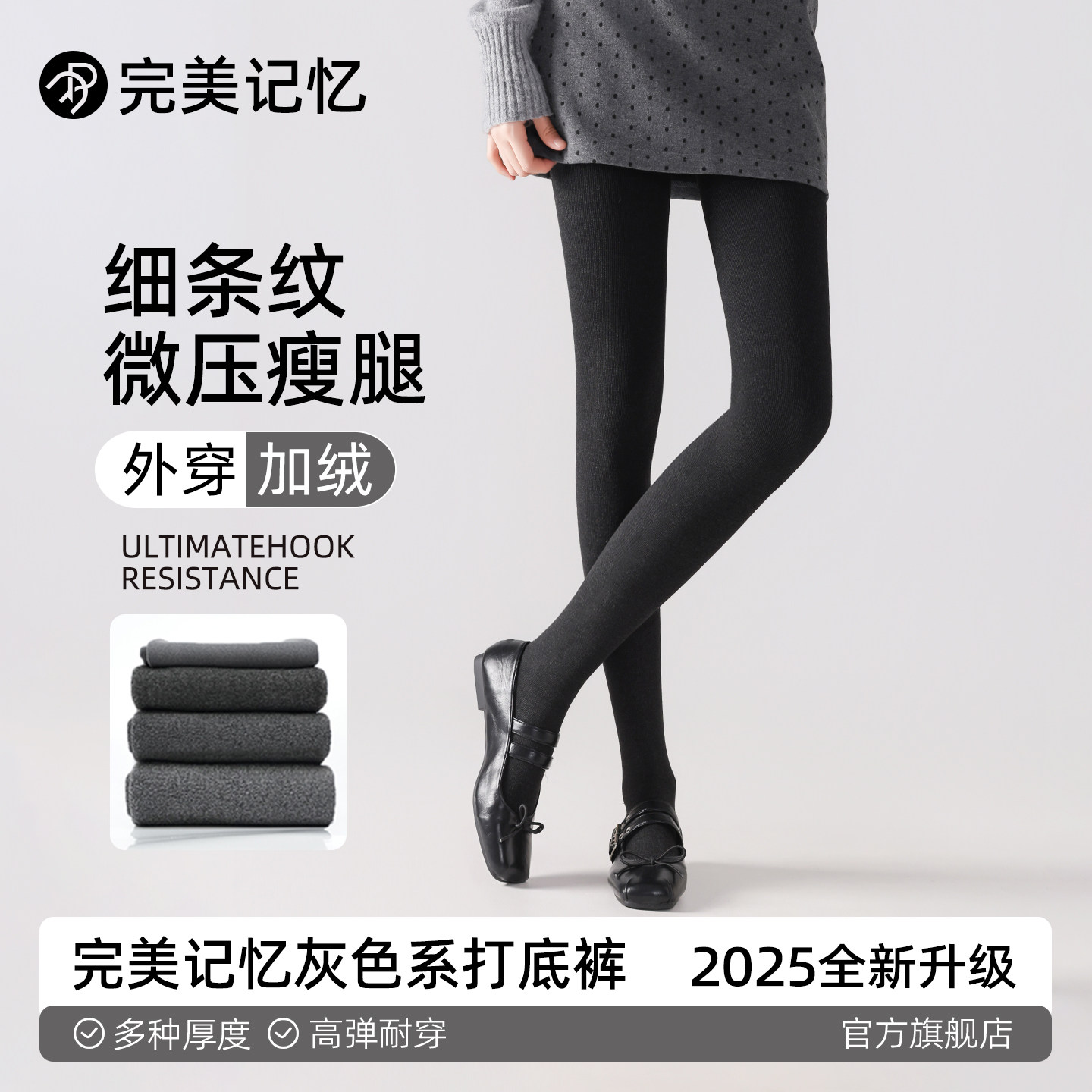 完美记忆灰色打底裤女2025新款冬外穿加厚绒连裤袜黑色微压显瘦腿