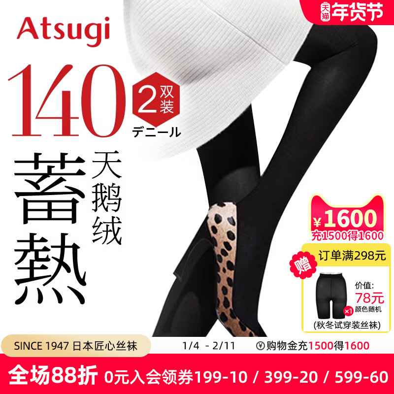 厚木官方旗舰店atsugi丝袜女80D140D中加厚天鹅绒连裤袜黑色2双装