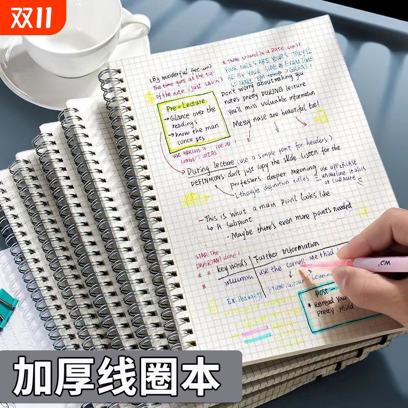 加厚线圈笔记本b5初中记录本横线a5考研大学生ins风摘抄本高颜值