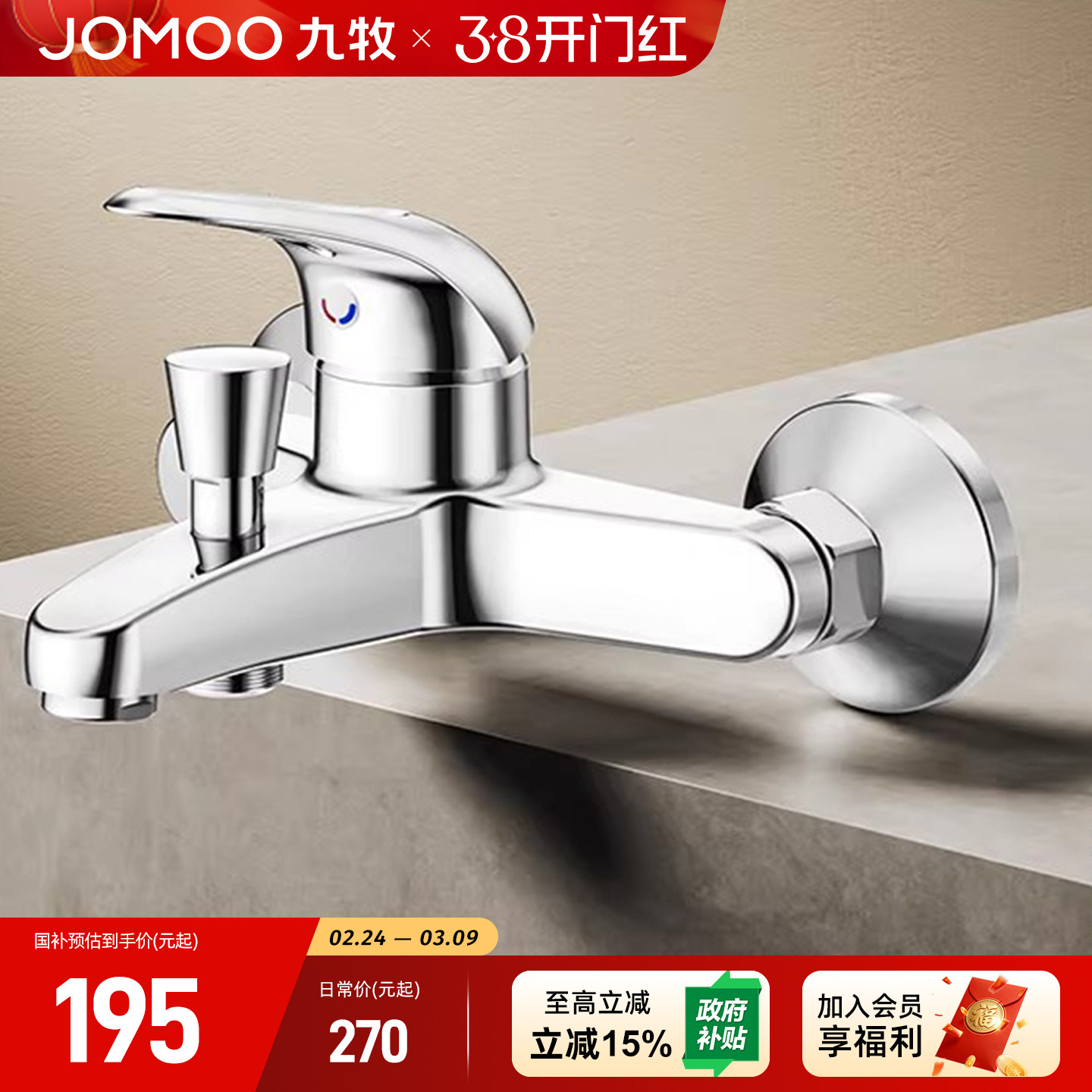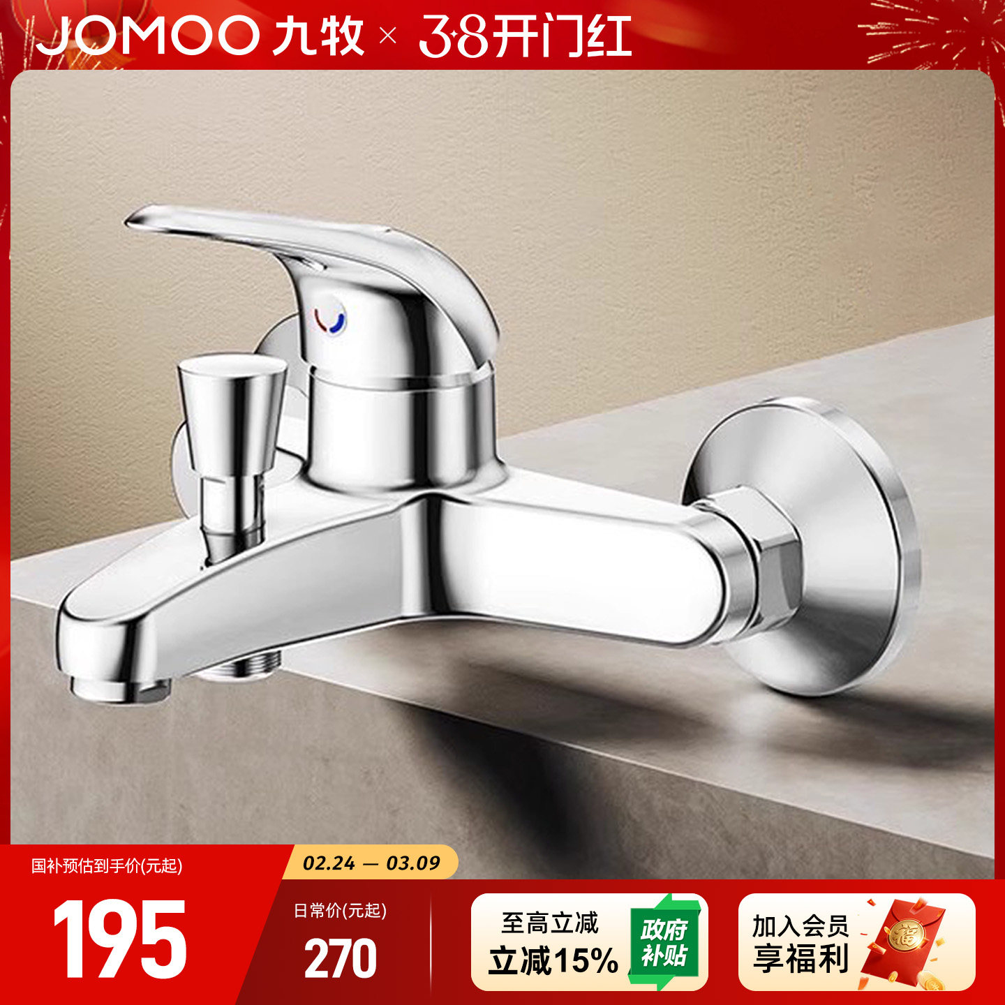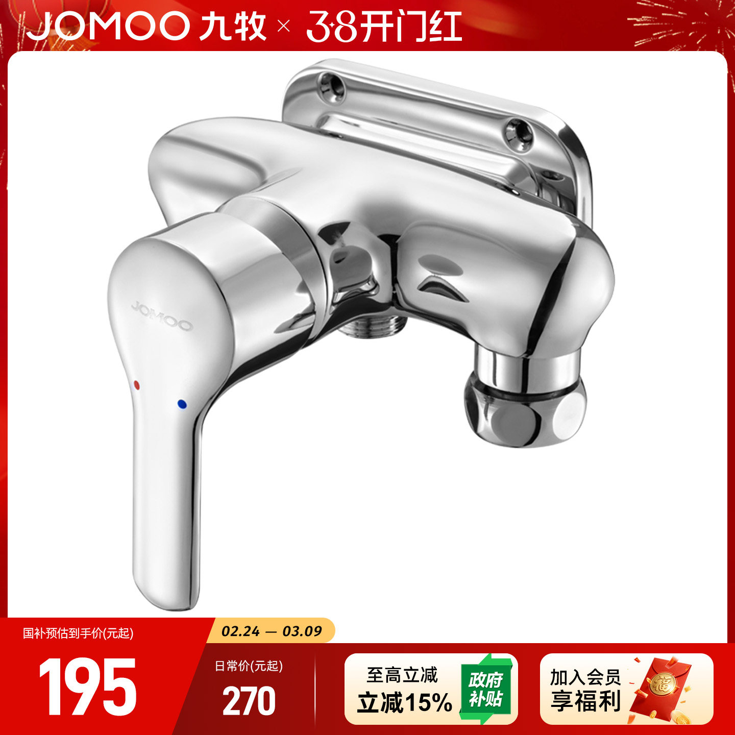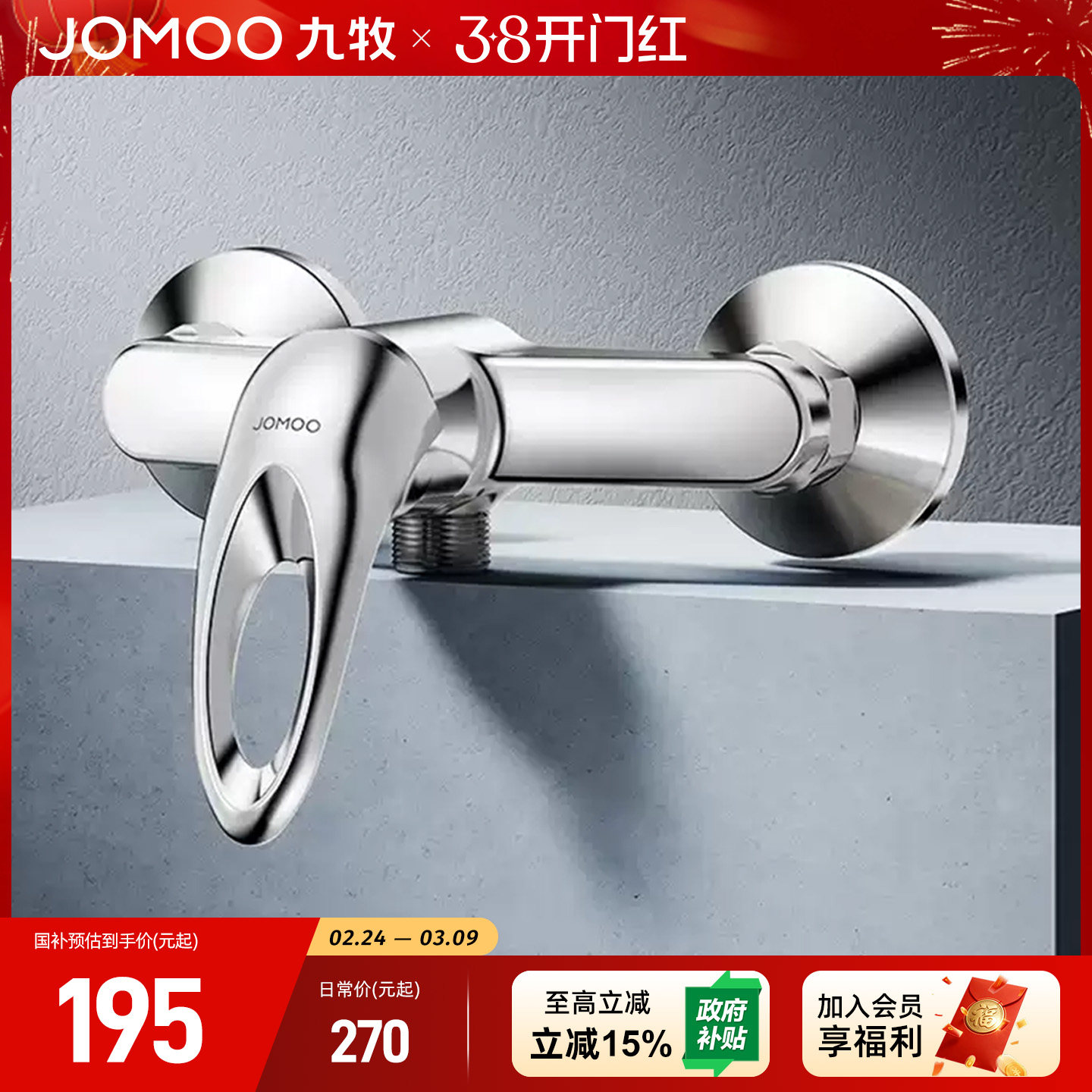 JOMOW精铜淋浴水龙头冷热混水阀一体双开混合冷热沐浴花洒三合一