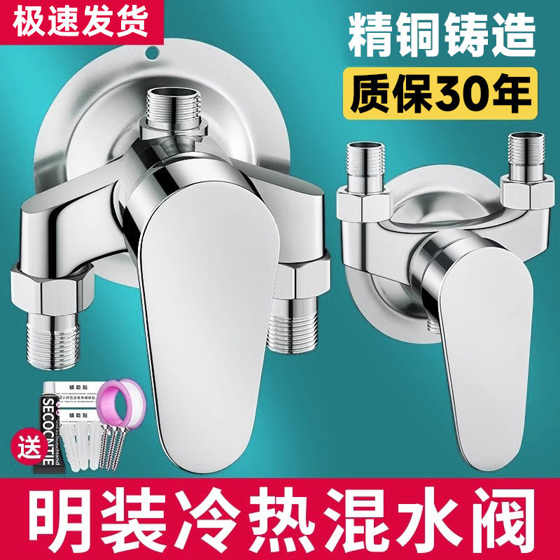 明装淋浴冷热水龙头混水阀卫生间热水器太阳能沐浴花洒开关混合阀