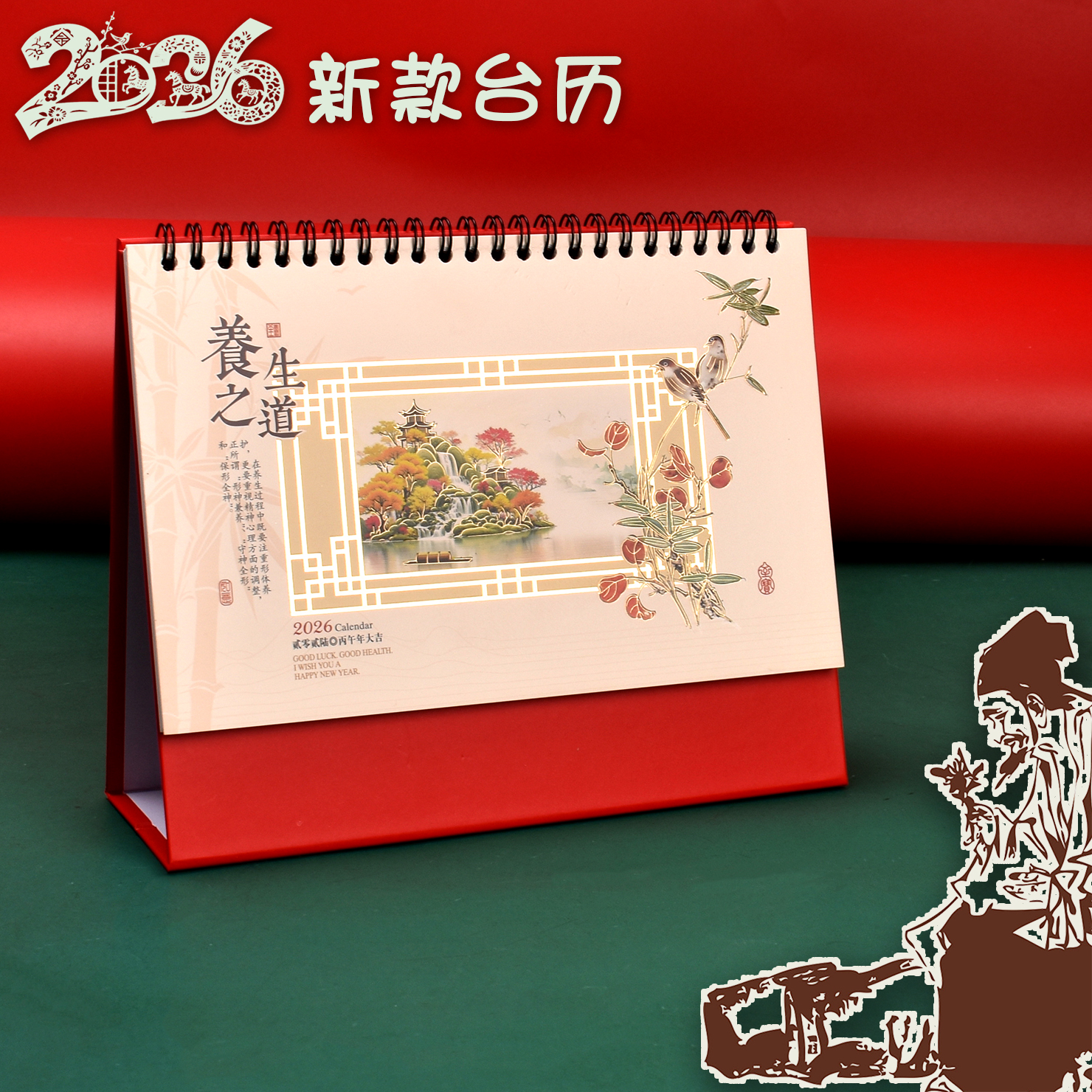 布艺高架2026年新款纸架台历定制可印logo公司企业商务广告定做办公室创意摆件竖款日历本记事中国风月历日历
