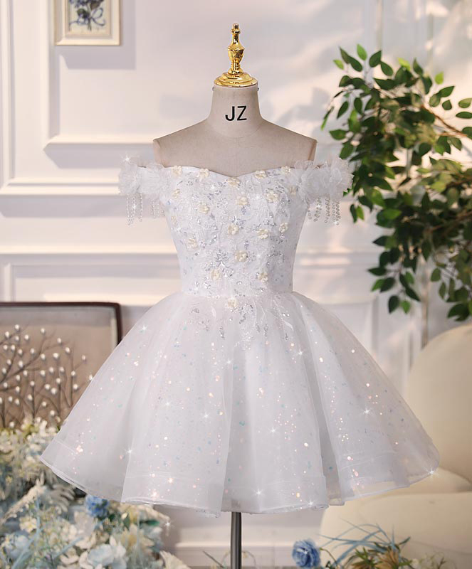 白色一字肩蓬蓬裙聚会生日party网纱小裙子法式晚礼服主持演出服