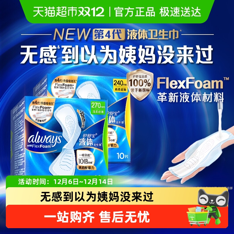 【优于新国标】护舒宝液体卫生巾量多日用270mm 48片超薄透气姨妈