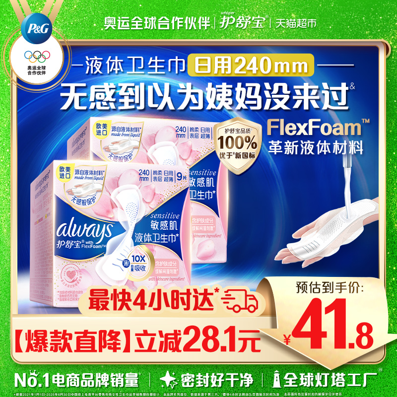 护舒宝敏感肌液体卫生巾日用240mm 18片超薄透气姨妈巾官方正品