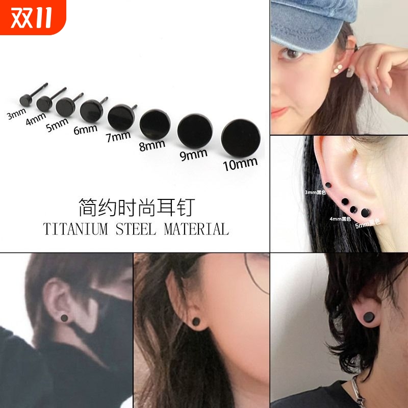 男士钛钢防过敏纯黑色圆形耳钉韩国版潮男个性耳环单只陈伟霆同款