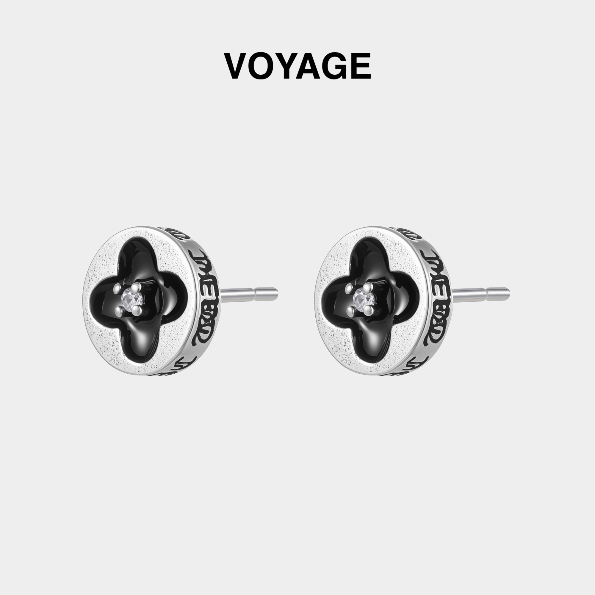 MEDMHERO官方925银刻雕四叶花耳钉潮流女黑色复古潮流耳饰送男友