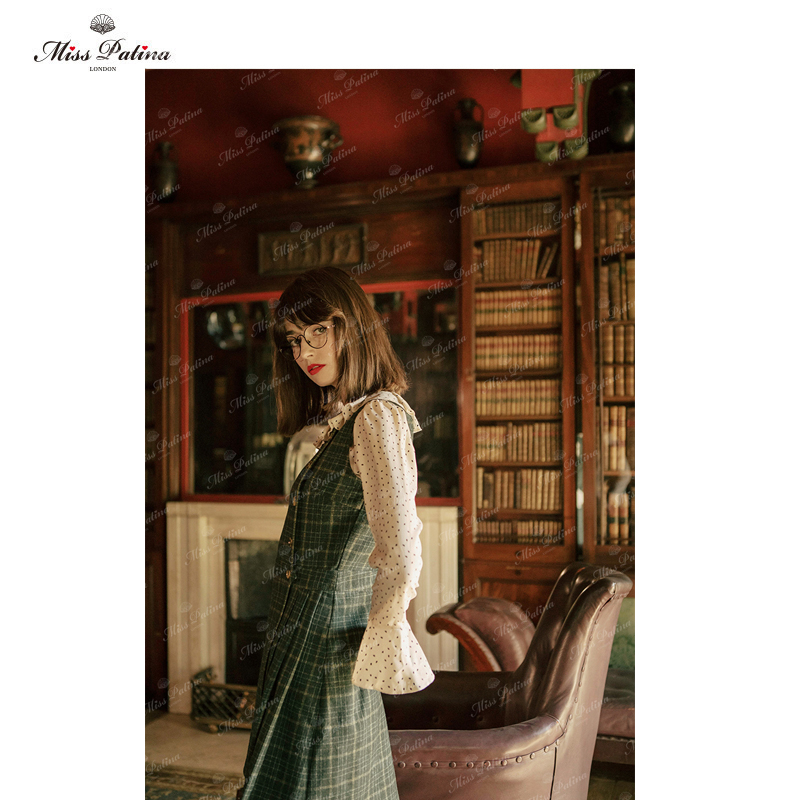 MP复古原创设计 科幻剧Dr.Who同款学院风方领格子背心裙连衣裙
