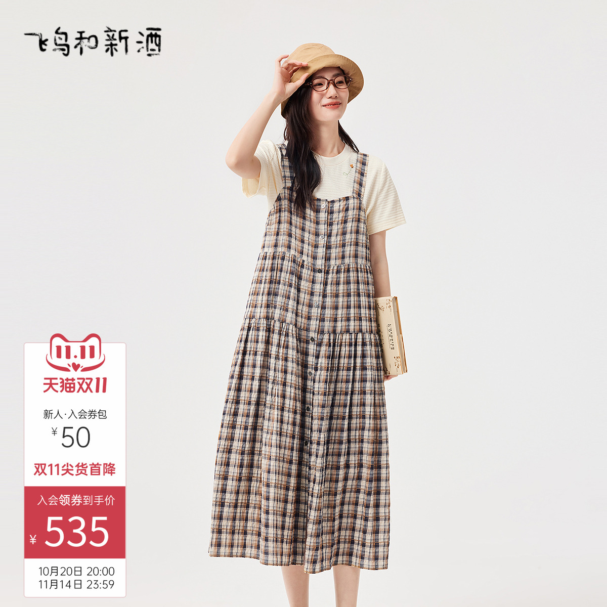 飞鸟和新酒商场同款2025春新款宽松休闲格子背心裙女FZ510182004