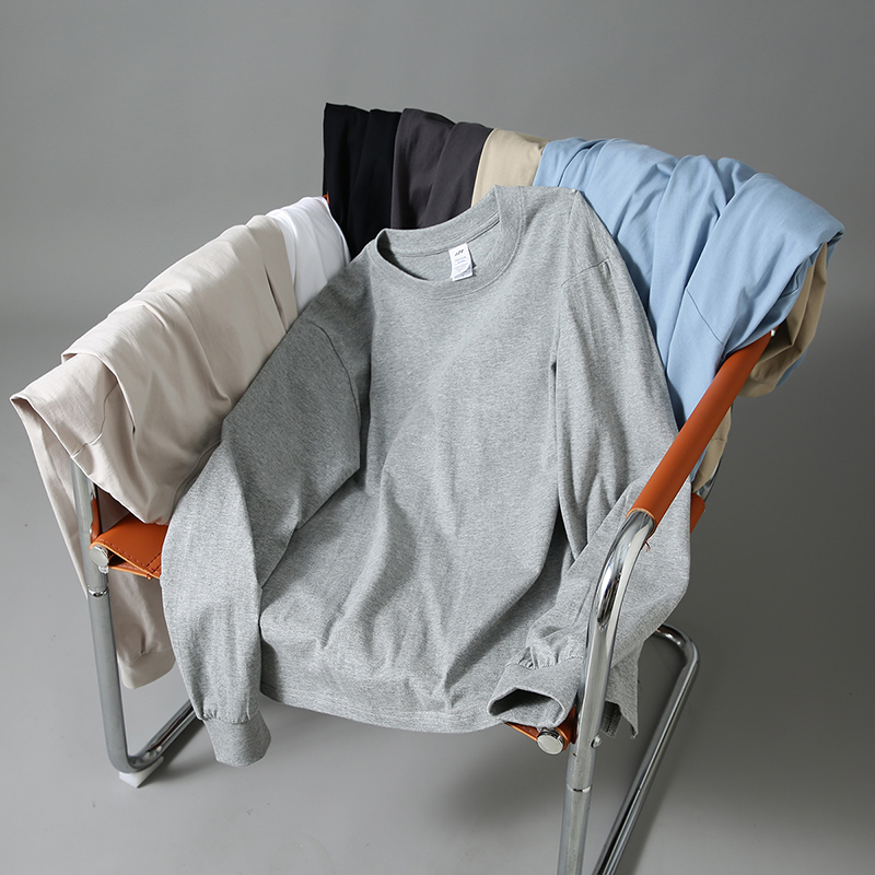 纯棉重磅宽松日系T恤衫男女长袖圆领打底衫纯色潮牌情侣黑白灰长t