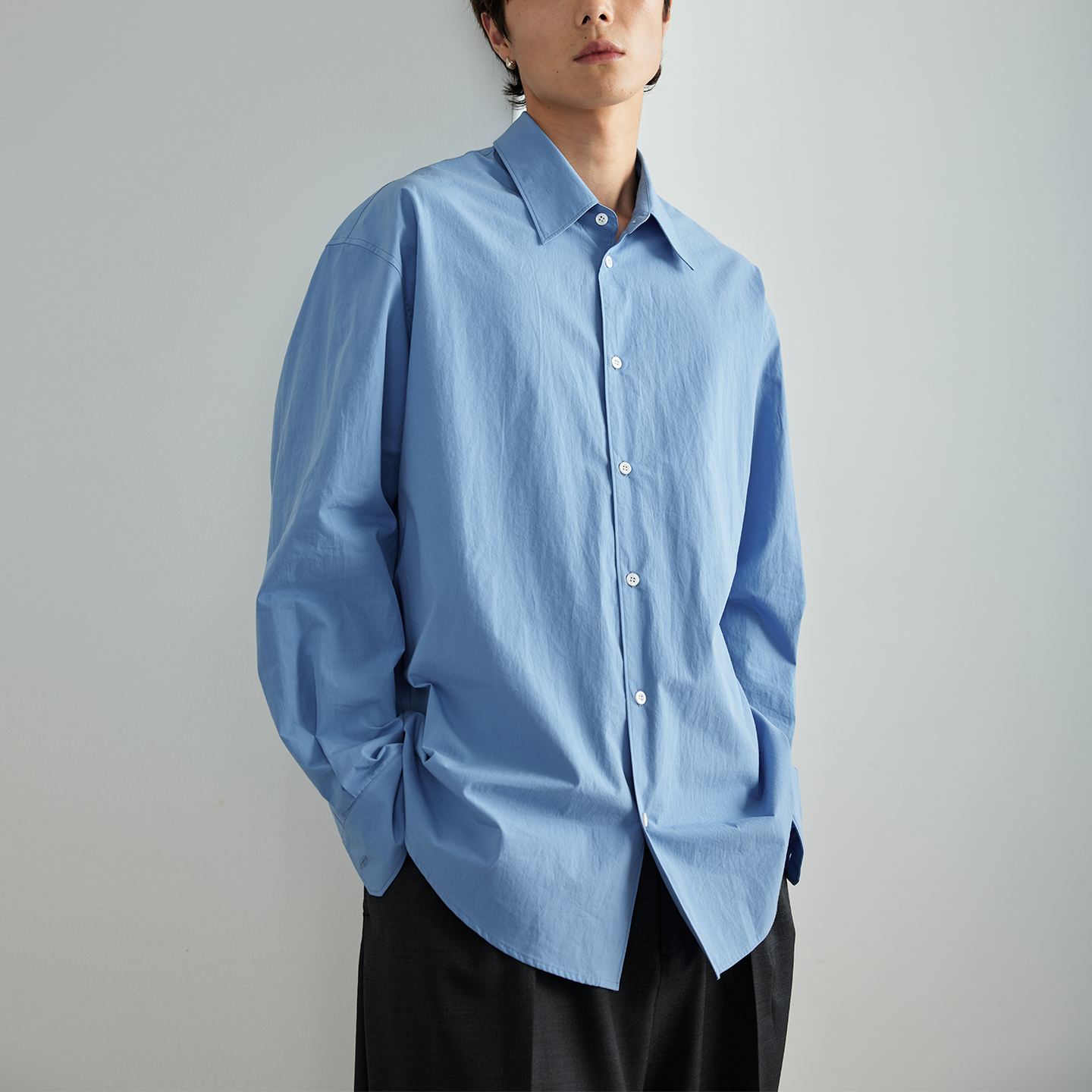 AWT25AW 长绒棉材质基础简约通勤舒适宽松纯色长袖小尖领衬衫男女
