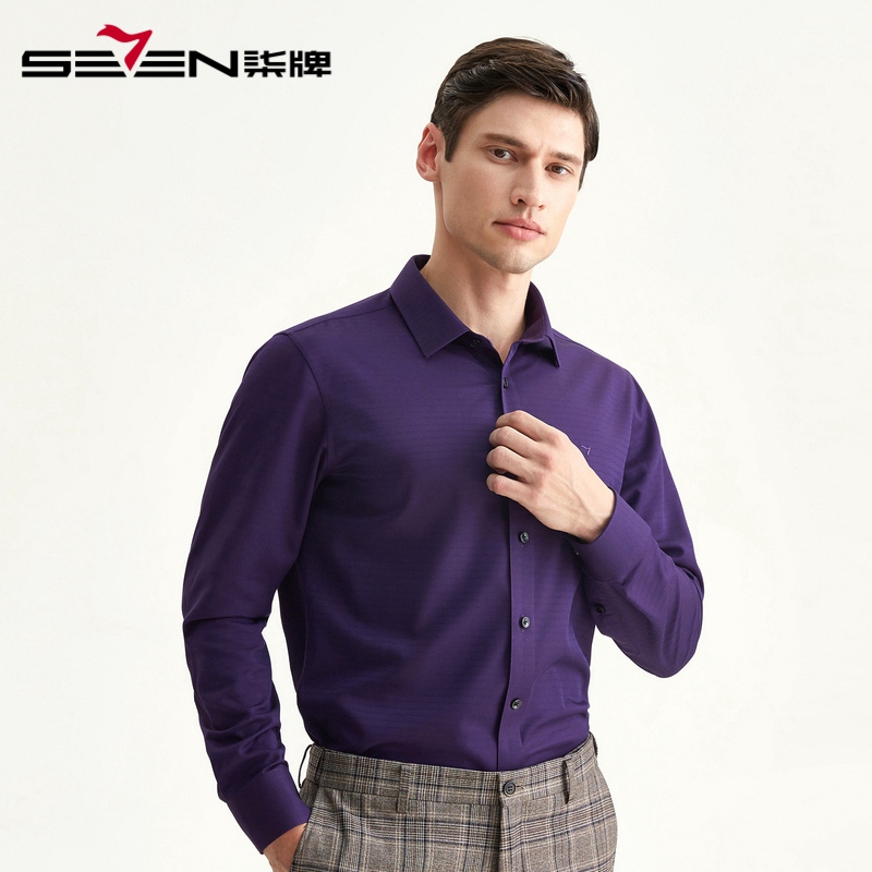 【清仓】柒牌男装秋冬长袖衬衫纯色时尚长衬男士商务衬衫秋款上衣