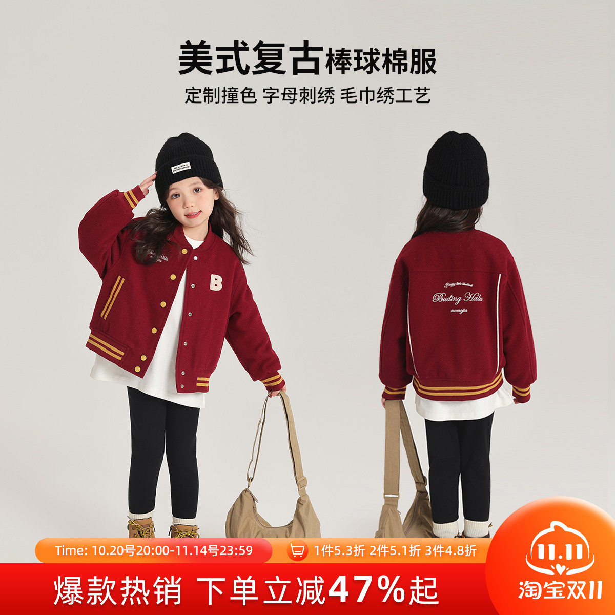 沫沫家童装冬装女童棉服2025秋冬季新款儿童百搭红色棒球服外套