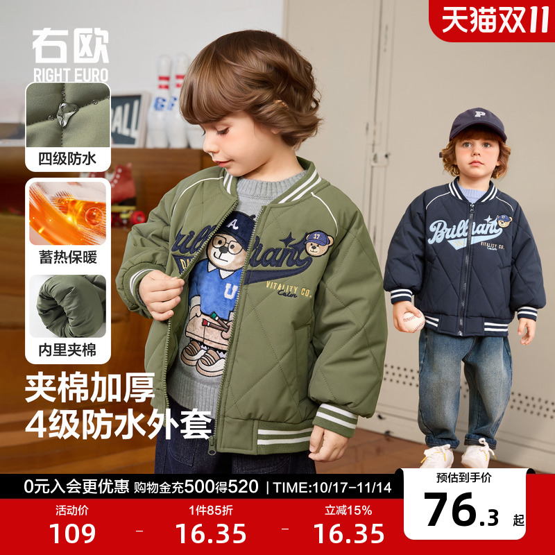 右欧男童女童棒球棉服外套小熊学院系列冬季新款童装儿童防水棉衣