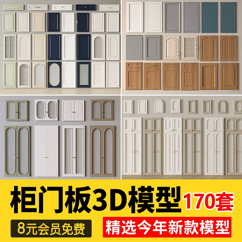 柜门吊柜橱柜衣柜门板欧式新中式门现代轻奢白色实木3d模型3dmax