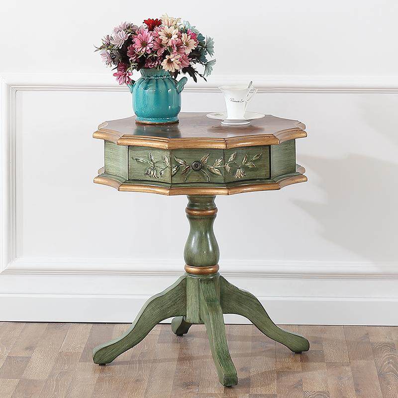地中海沙发边几角几美式复古彩绘休闲洽谈桌子卧室做旧小茶几2072
