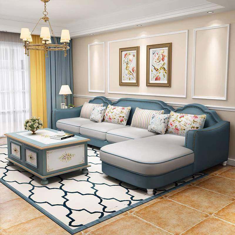 美式地中海实木沙发客厅家用韩式田园小户型三人U型布艺沙发组合