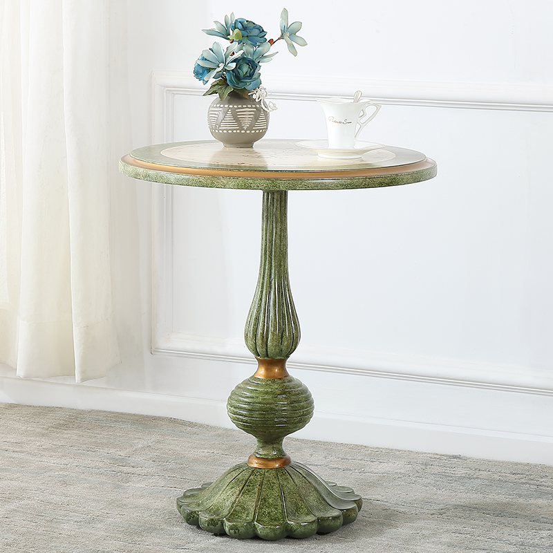 地中海圆形沙发边几角几美式彩绘休闲桌欧式复古绿色花几圆桌3209