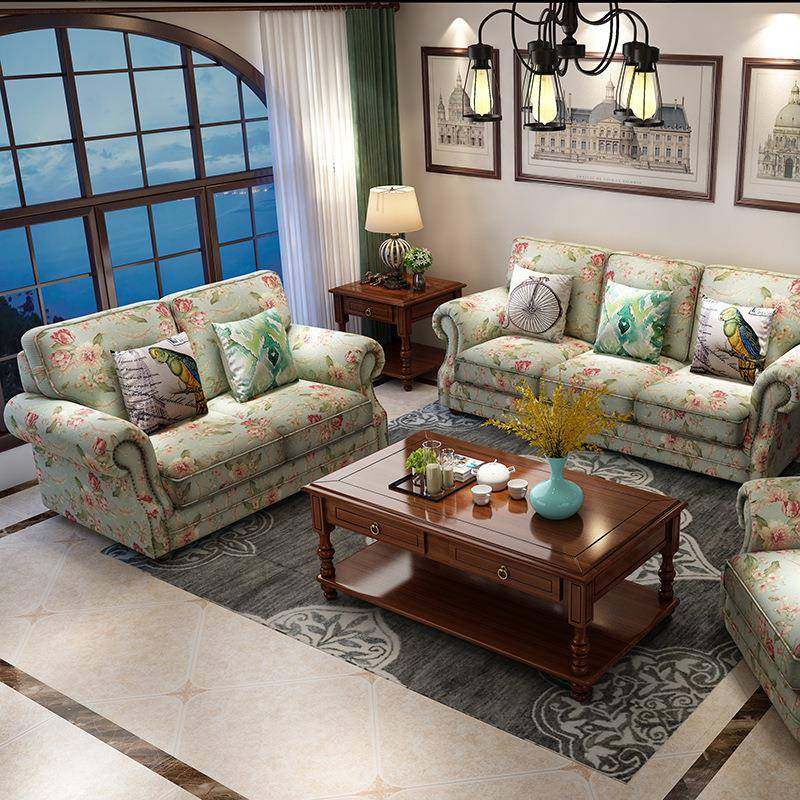 美式乡村布艺沙发客厅三人位小户型轻奢碎花地中海田园风格小美式
