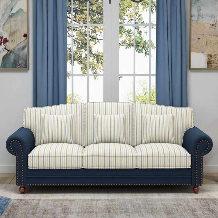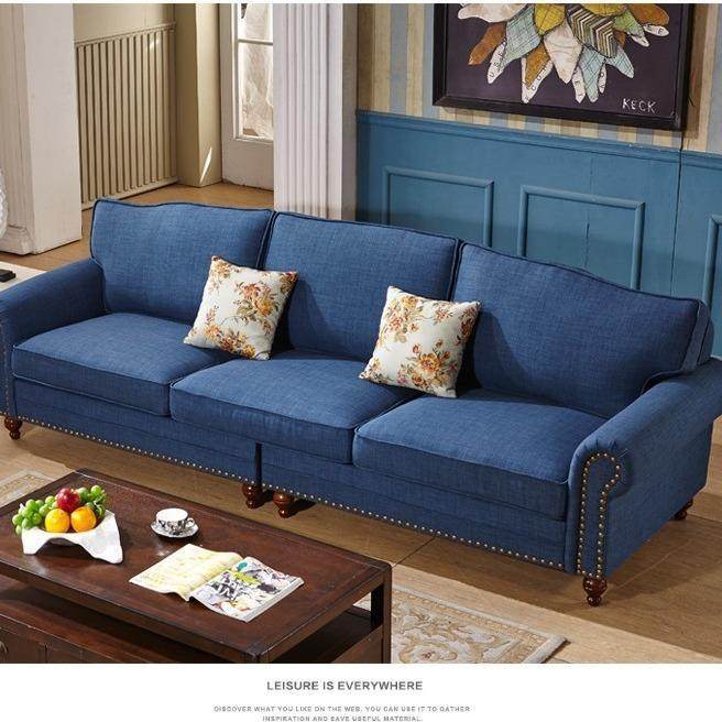 地中海美式布艺沙发客厅小户型直排三人位组合家具欧式田园风蓝色