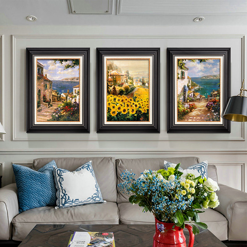 地中海乡村美式棉麻布艺沙发直排四人位客厅整装轻奢复古田园风格