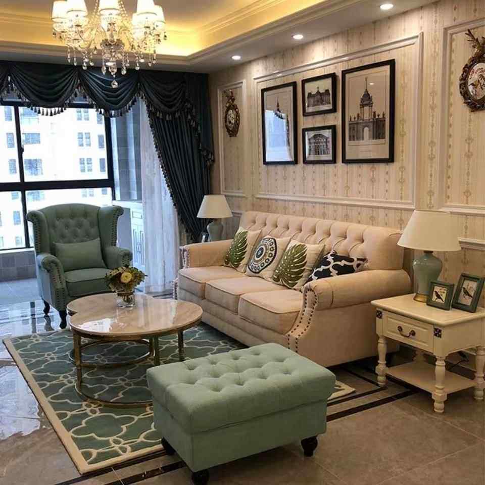 美式科技布沙发乡村田园地中海风格中小户型轻奢拉扣布艺沙发组合