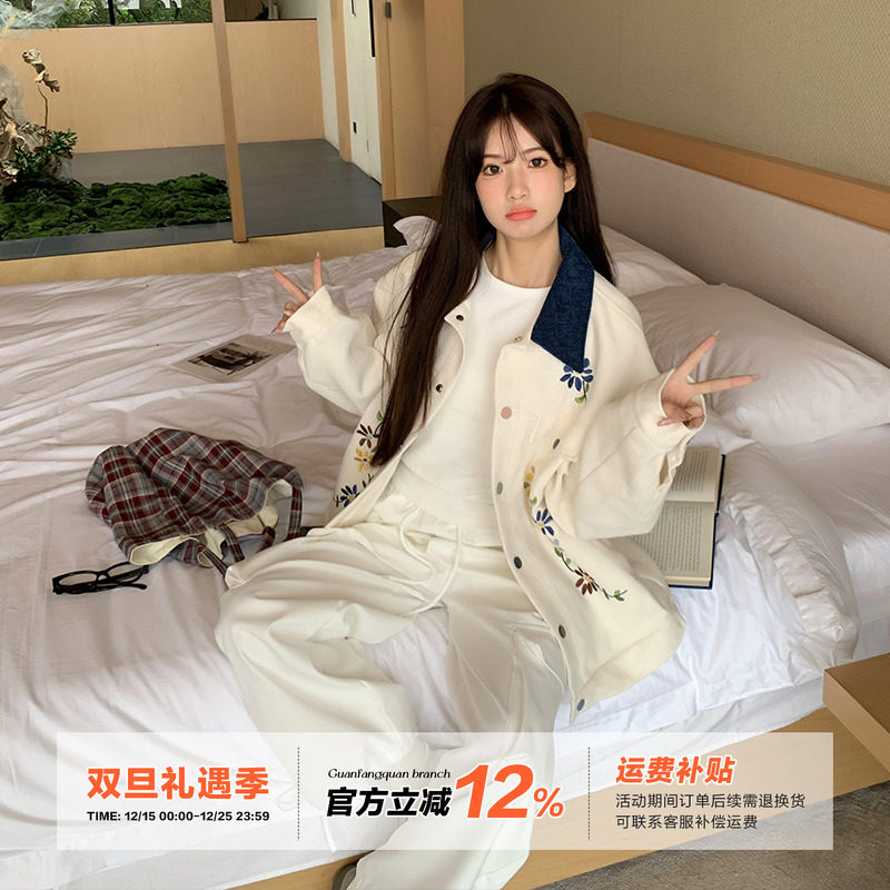 橘子树在哪儿复古国潮花卉刺绣灯芯绒外套女秋宽松小众设计感夹克