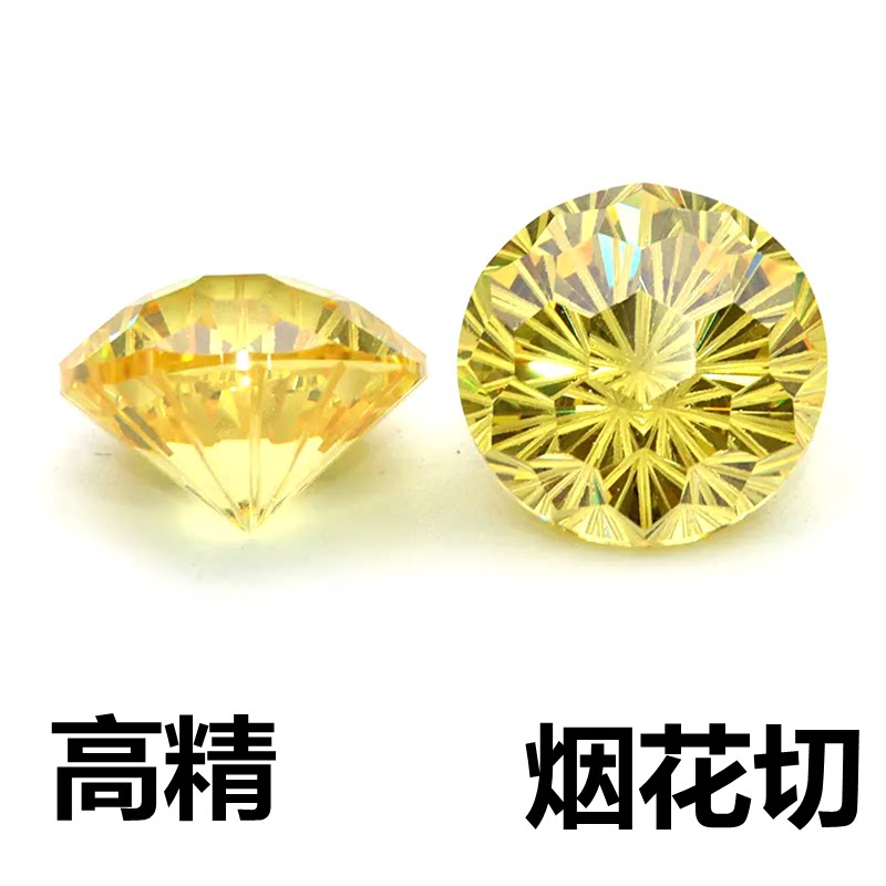 高精切圆形黄宝石烟花切金黄色宝石鹅黄高碳钻裸钻石戒指戒面diy