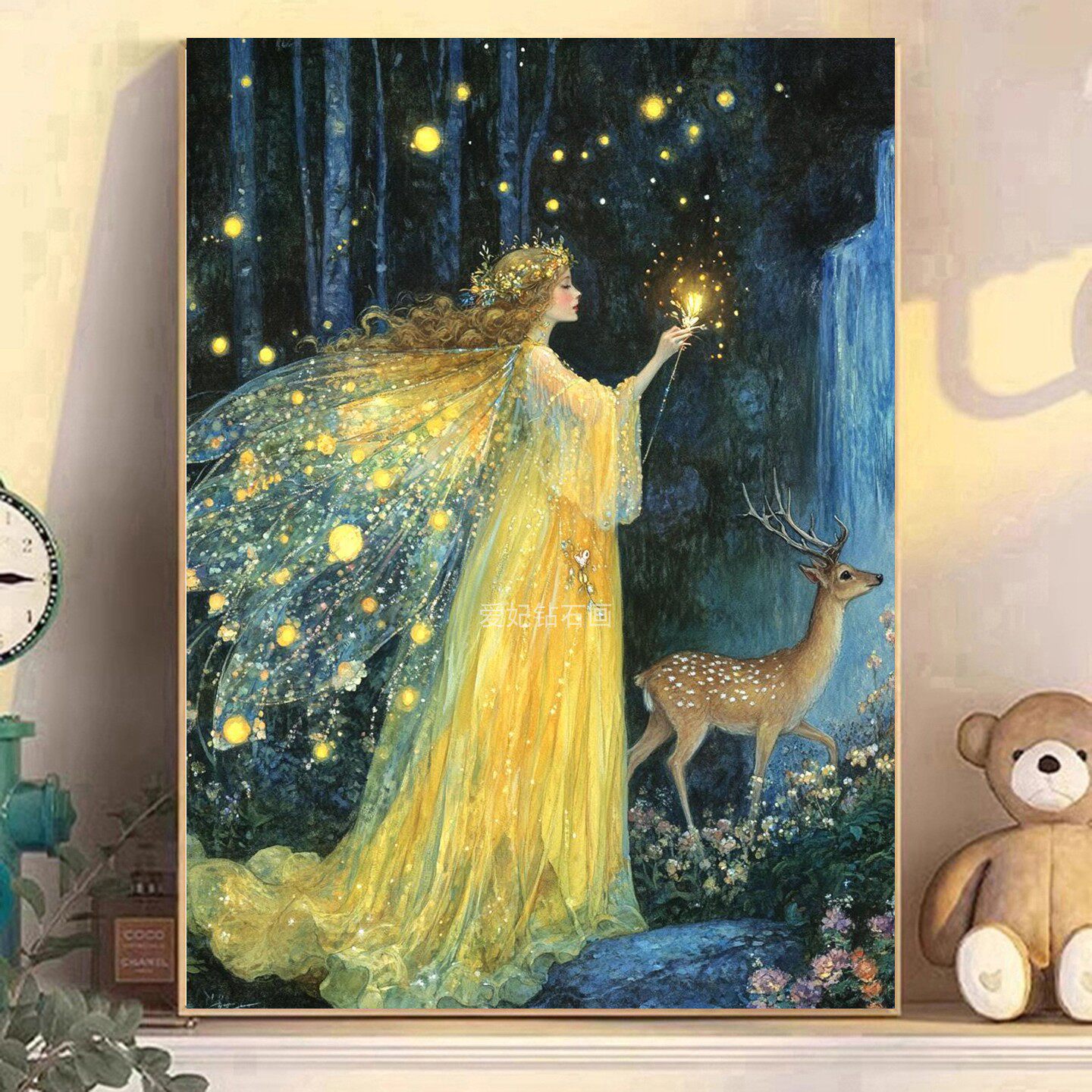 2025新款DIY方钻满钻钻石画钻石绣带钻黄色裙子魔法仙子麋鹿瀑布