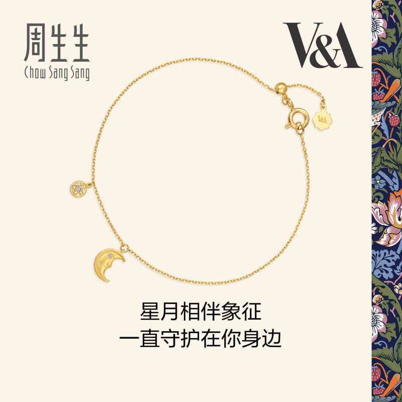 周生生V&A博物馆联名钻石护身符星月手链18K黄色黄金腕链94018B