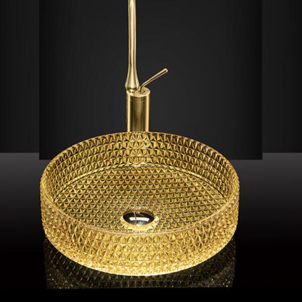 卫生间圆形压铸钻石水晶玻璃轻奢风洗手盆浴室阳台黄色艺术台上盆